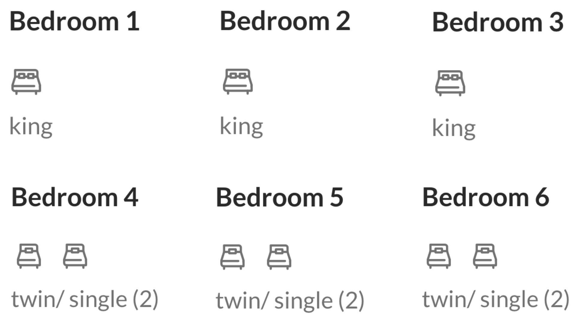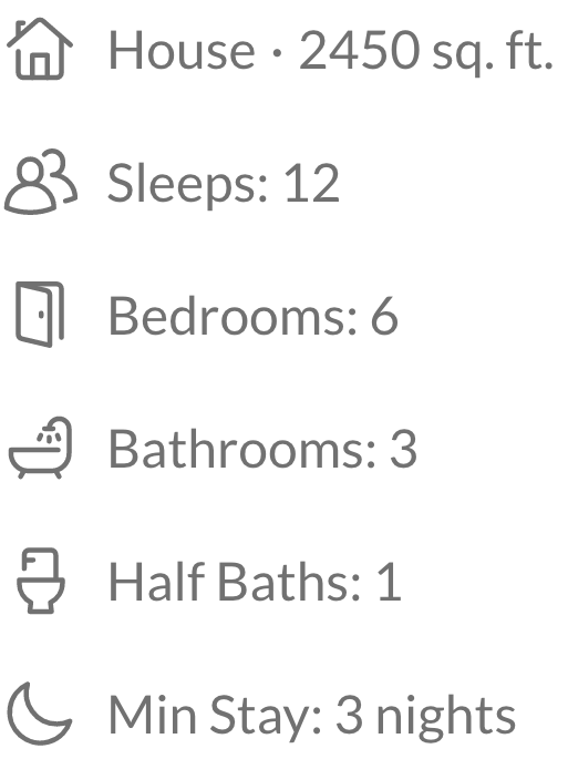 There are 3 kids-themed bedrooms - each with 2 twin beds, dressers, and closet space, plus nearby bathrooms.