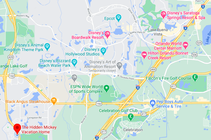 Location is everything when it comes to your vacation home. The Hidden Mickey is off of US 192 and 429 giving you access to both Disney World and Universal Studios.